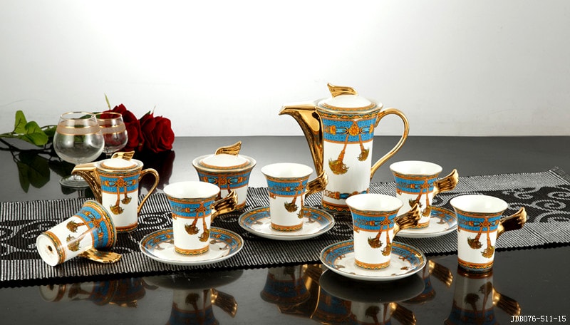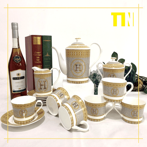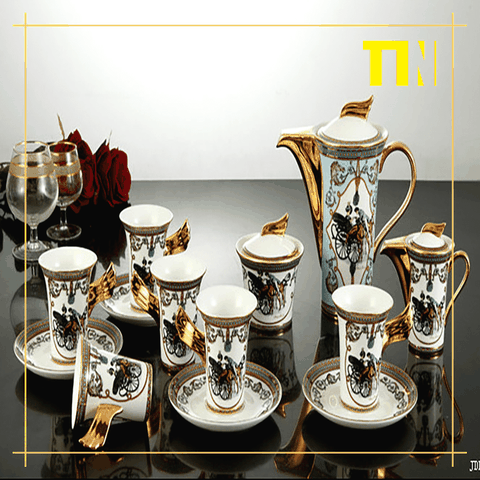 - Một bộ bao gồm: 1 bình pha trà + 1 bình rót trà + 6 chén + 6 đĩa nhỏ + 2 đĩa lớn.