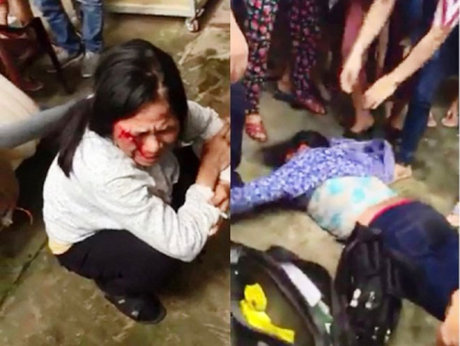 | 2 nạn nhân bị người dân quây đánh đến nhập viện. Ảnh cắt từ clip |