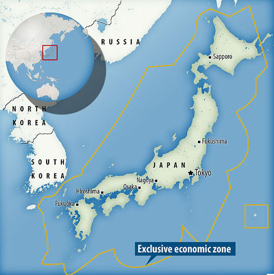| Tên lửa Triều Tiên rơi vào vùng đặc quyền kinh tế Nhật (đường màu vàng). Ảnh: Daily Mail |
