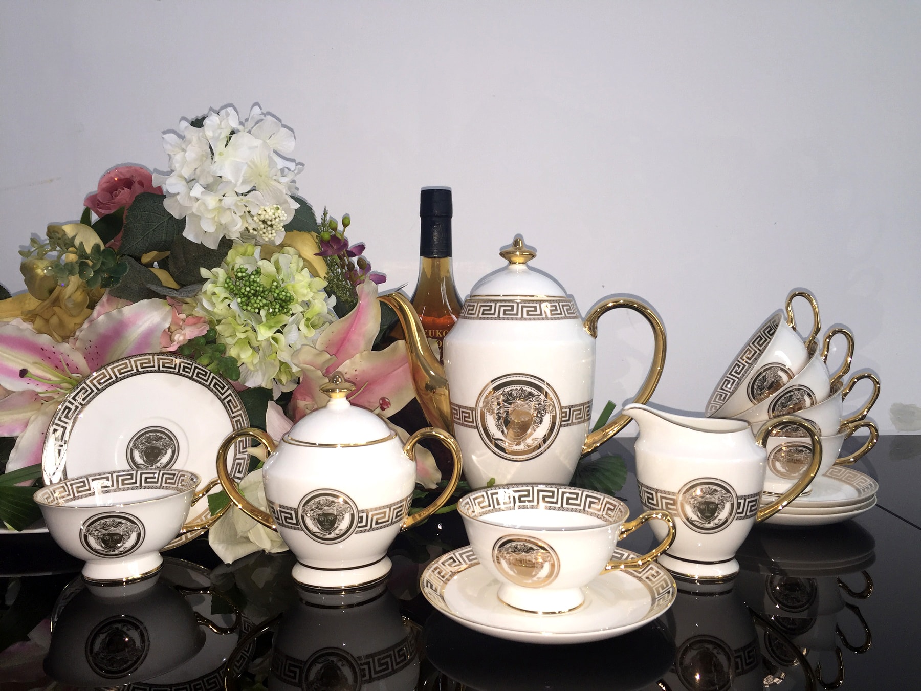 - Một bộ bao gồm: 1 bình pha trà + 1 bình rót trà + 6 chén + 6 đĩa nhỏ + 2 đĩa lớn.