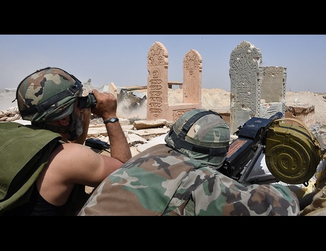 | Quân Syria bên ngoài thành phố Deir ez-Zor. |