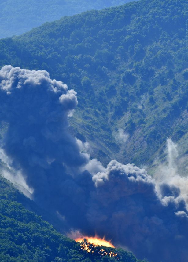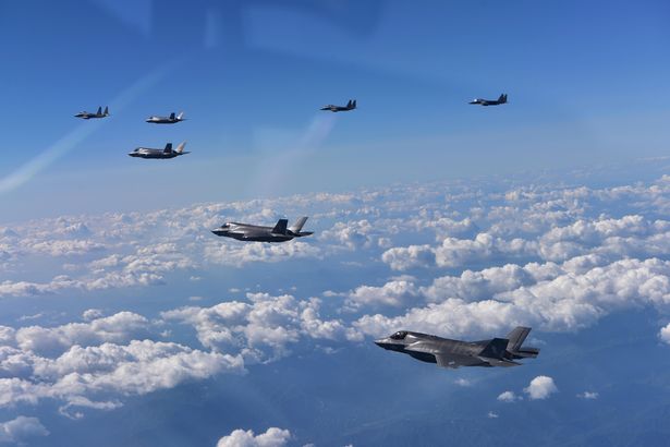 | Các chiến đấu cơ Mỹ và các máy bay ném bom Hàn Quốc đã thực hiện cuộc tận trận này chỉ 2 ngày sau khi Triều Tiên phóng tên lửa qua không phận Nhật Bản. |