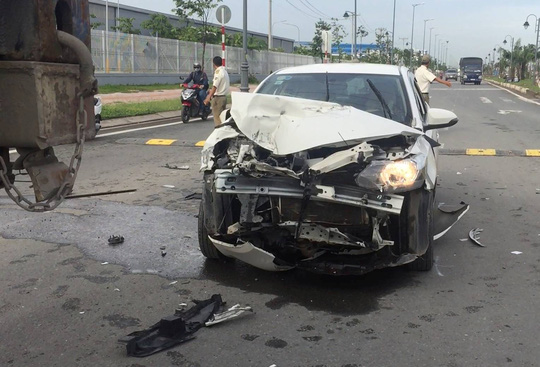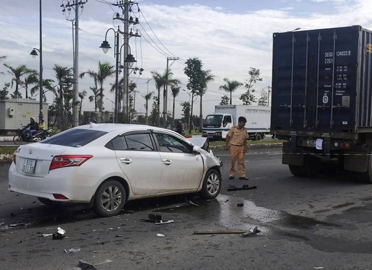 Gần 7 giờ, xe 4 chỗ hiệu Toyota Vios BKS 51G – 311...do một thanh niên khoảng 35 tuổi điều khiển, khi chạy từ đường D2 ra Xa lộ Hà Nội thì bất ngờ tông vào xe container BKS 51C – 439...., lưu thông cùng chiều phía trước, lúc qua cổng Công ty Samsung.