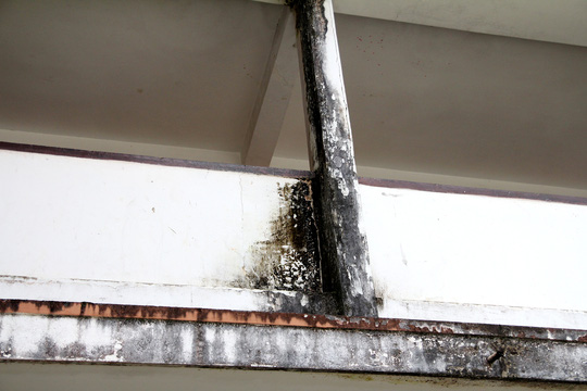 | Rong rêu, dột ẩm ướt tại các lang cang của trường. |