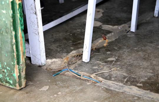 | Nền các phòng học bị bong tróc, nguy hiểm. |
